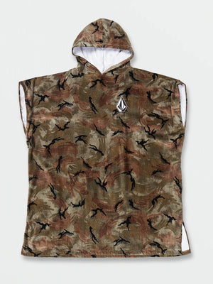 The Volcom Surf Vitals J Robinson Towel is a hooded changing poncho designed in collaboration with pro surfer Jack Robinson. Crafted from 100% soft cotton terrycloth, it offers comfort and practicality for changing in and out of wetsuits or staying warm post-surf. Features include a lined hood, embroidered Stone logo, and a one-size-fits-all design. Available in classic black and camouflage prints.